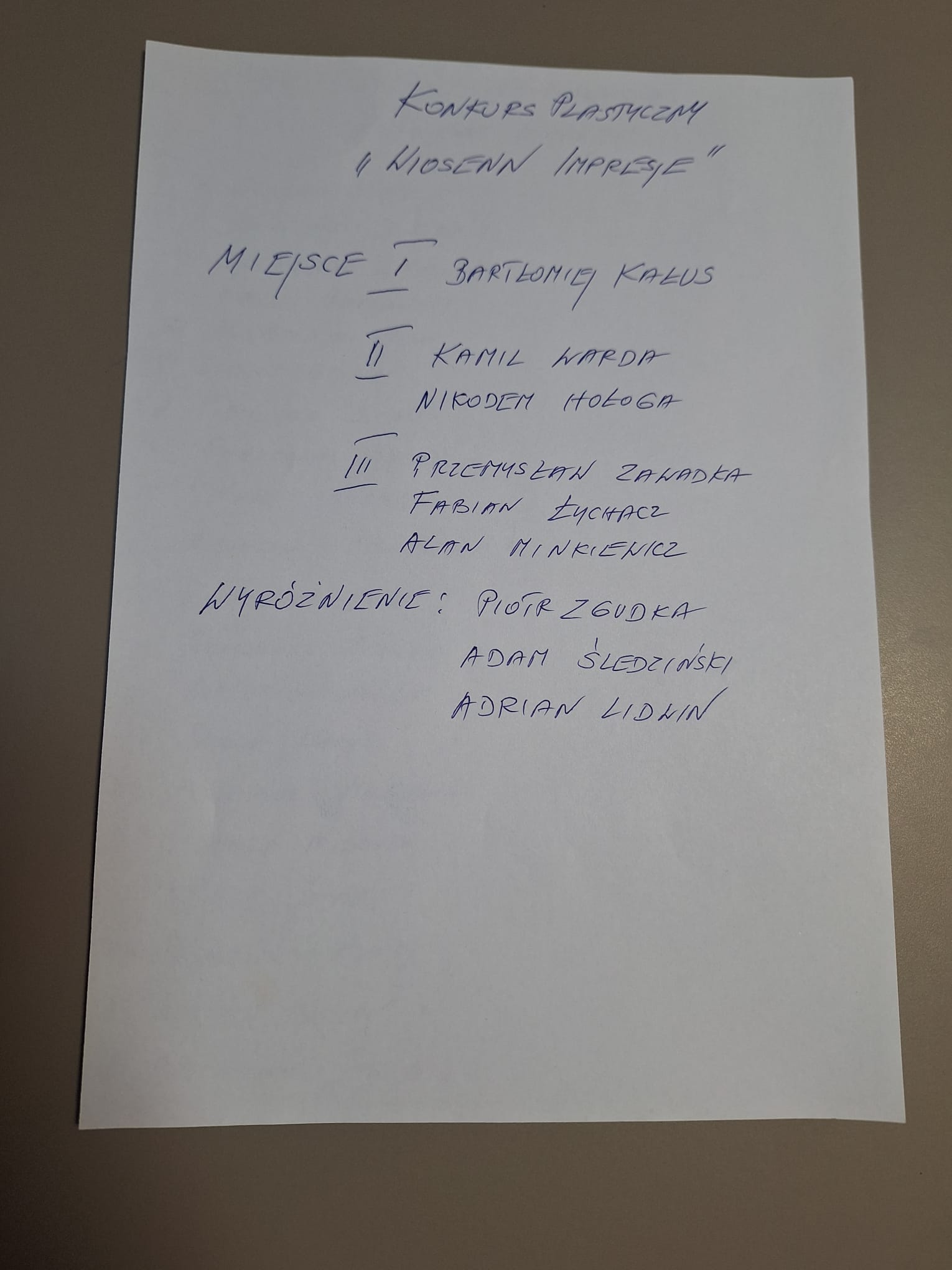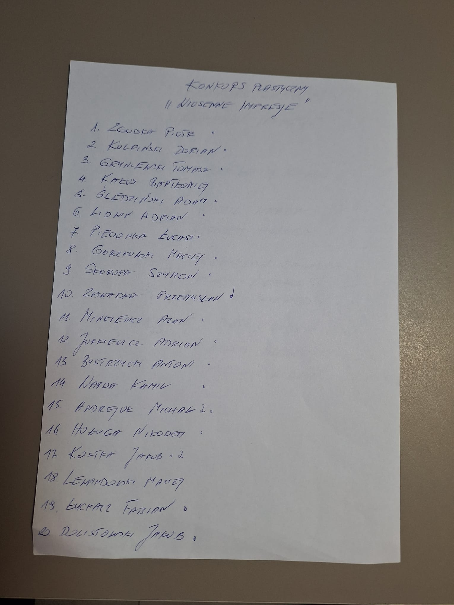 W konkursie wzięło udział 20 wychowanków. Najładniejsze prace wykonały następujące osoby: