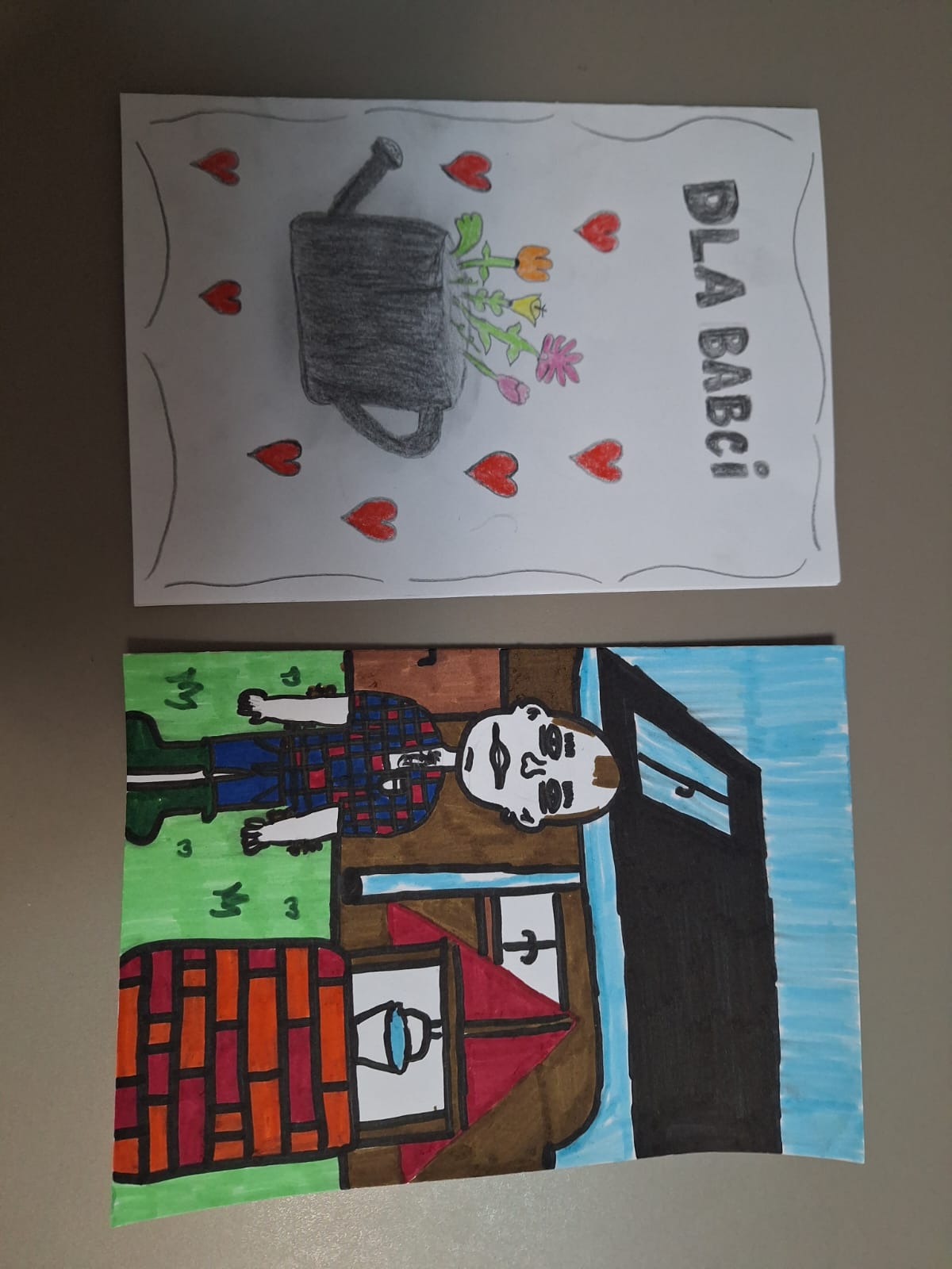 Własnoręcznie wykonane prace wychowankowie wysłali do najbliższych. Na pewno taki gest wywoła uśmiech i radość u dziadków.