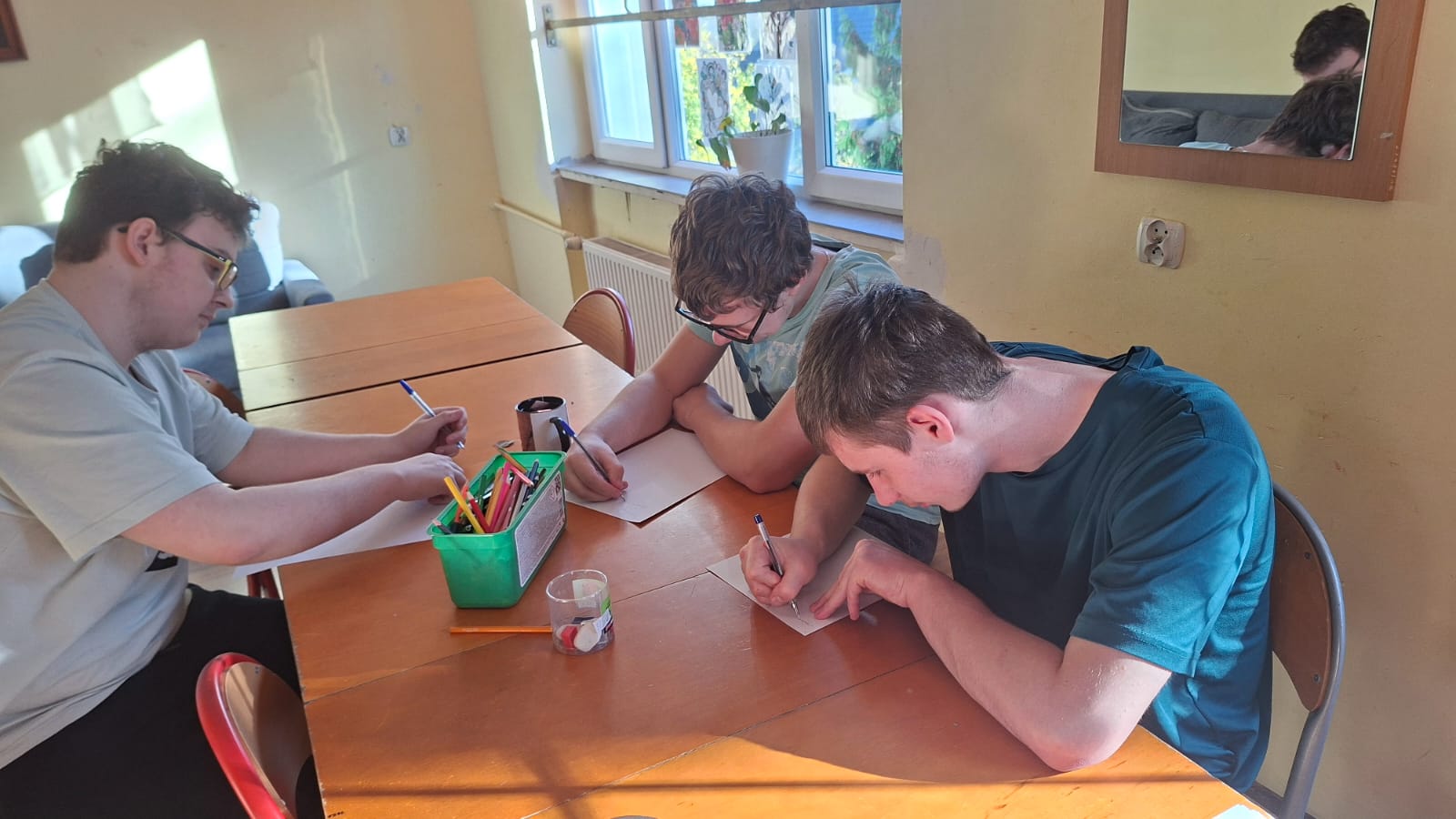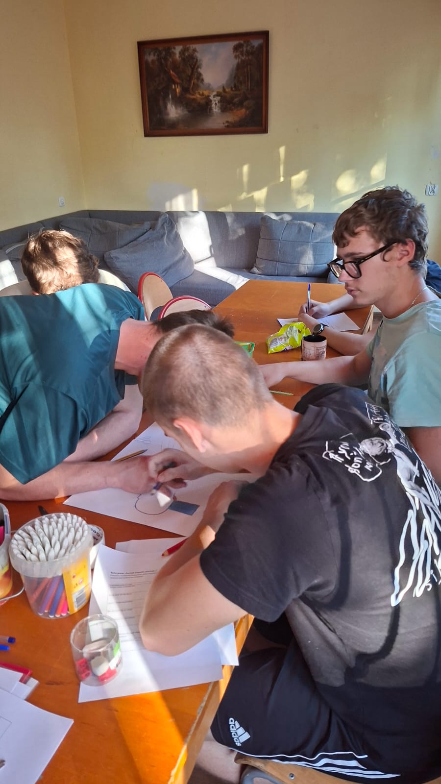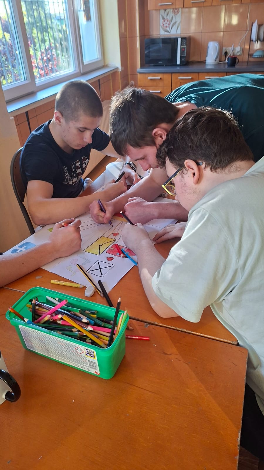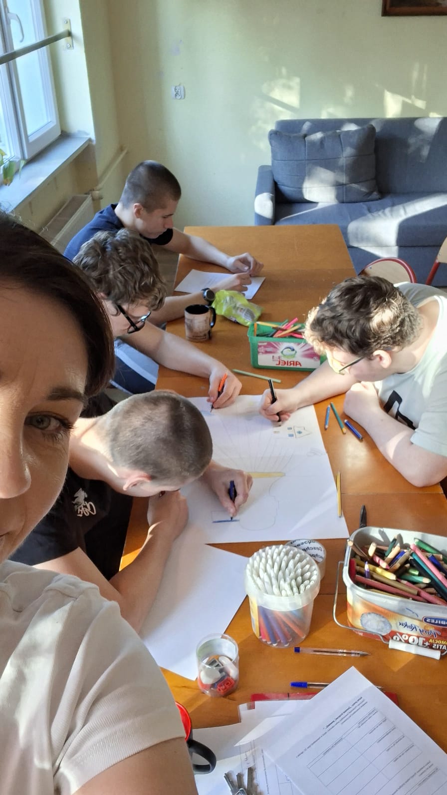 Podczas zajęć prowadzonych przez wychowawcę Karolinę Grabowską uczniowie poznawali zasady komunikacji bez przemocy (NVC), ucząc się wyrażania emocji w sposób pełen szacunku i empatii. Chłopcy dyskutowali o tym, co oznacza dobra komunikacja, ćwiczyli przekształcanie komunikatów nacechowanych oskarżeniami w komunikaty typu „ja” oraz wspólnie stworzyli plakat prezentujący różne narzędzia efektywnej komunikacji.